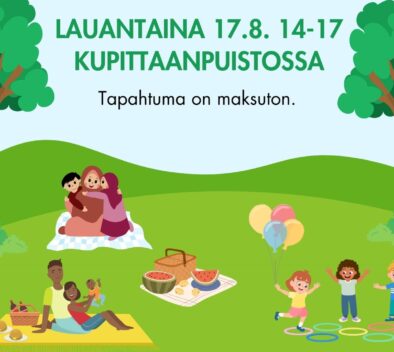 Tervetuloa kansainväliselle perhepiknikille Kupittaanpuistoon Seikkailupuiston pääporttien läheisyyteen lauantaina 17.8. klo 14.00-17.00! Ohjelmassa on...